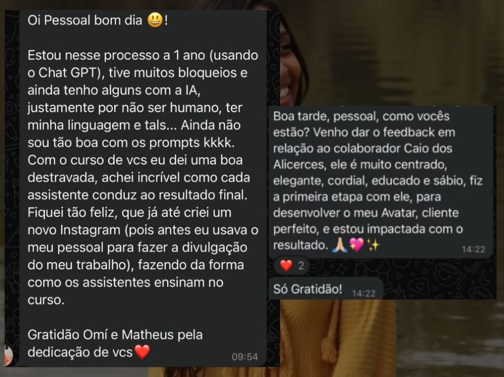 Estamos em grupos de networking, juntos dos maiores Players, aprendendo diretamente com quem trouxe o Marketing para o Brasil. Atuamos nos bastidores até alguns meses atrás e agora estamos nos posicionando como especialista em Marketing com IA e criamos a ÚNICA COMUNIDADE DE IA PARA TERAPEUTAS – Com muita dedicação e muito propósito!
